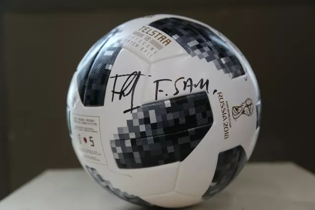 (圖:國際足聯(lián)秘書長(zhǎng)法特瑪·薩姆拉簽名球)
