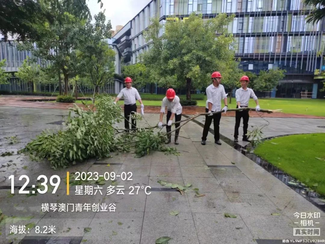 第一時(shí)間對(duì)園區(qū)環(huán)境進(jìn)行清障復(fù)原,完成園區(qū)所有枯樹(shù)樹(shù)葉清理、樹(shù)木扶正,樹(shù)撐檢查加固;完成園區(qū)公共垃圾桶、煙灰柱、地毯復(fù)原工作;檢查受災(zāi)情況并進(jìn)行修復(fù),檢查設(shè)備機(jī)房、電梯是否正常運(yùn)行等,確保企業(yè)可正常辦公。其中橫琴國(guó)際科創(chuàng)中心園區(qū)應(yīng)急避難場(chǎng)所本次接待人員約1500人次,產(chǎn)生生活垃圾約3噸,人員撤離后已及時(shí)清理。
