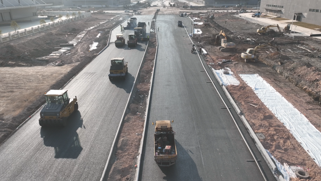 富山二圍北園區(qū)配套道路工程施工現(xiàn)場