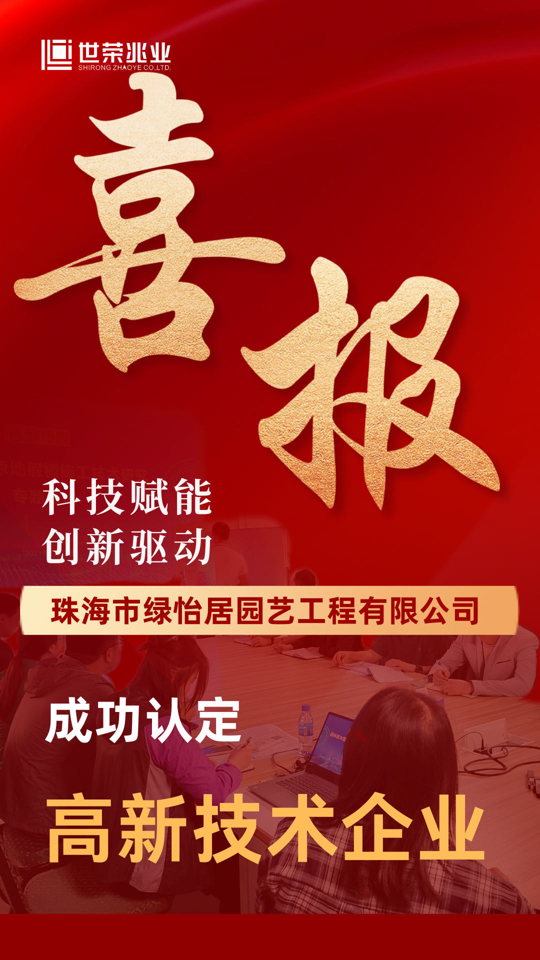 近日,大橫琴集團上市平臺廣東世榮兆業(yè)股份有限公司旗下珠海市綠怡居園藝工程有限公司成功通過高新技術企業(yè)認定。這一認證既是世榮兆業(yè)在大橫琴集團賦能下深化科技轉型的階段性成果,更是對綠怡居多年堅持技術研發(fā)的權威認可。