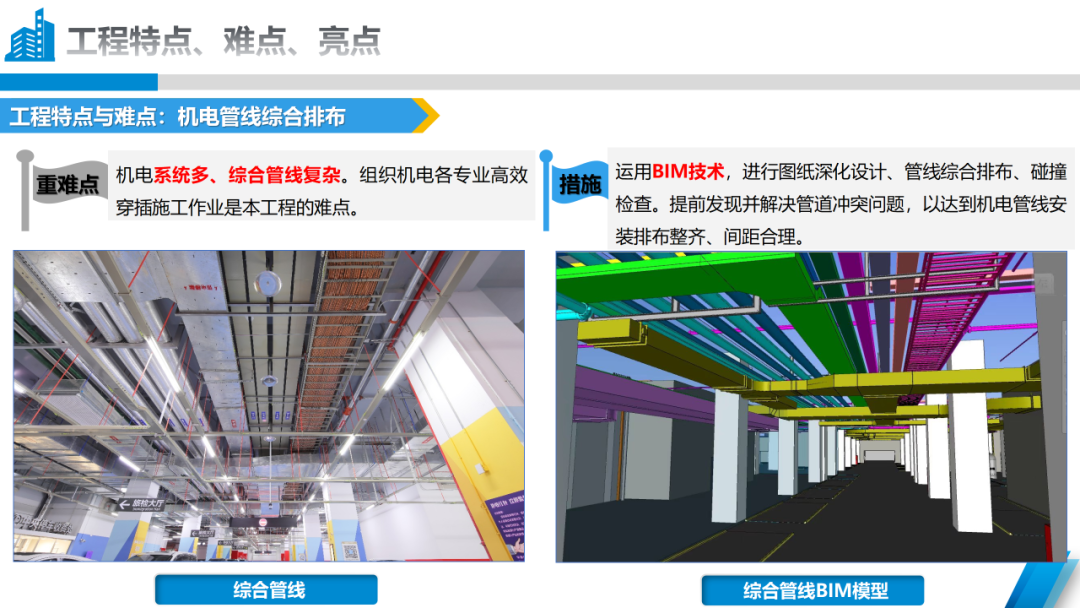 本次獲得“2023-2024年度中國安裝工程優(yōu)質(zhì)獎(中國安裝之星)”關(guān)鍵點在于,橫琴口岸及綜合交通樞紐工程由A區(qū)B區(qū)、C區(qū)主體建筑及南北側(cè)交通平臺組成,機電施工內(nèi)容包括建筑給排水及采暖、通風(fēng)與空調(diào)、建筑電氣三個分部工程。作為一個大體量機電工程,項目機電系統(tǒng)多、綜合管線復(fù)雜。在項目建設(shè)過程中,承建團隊運用BIM技術(shù),對圖紙進行深化設(shè)計、對管線綜合排布并進行碰撞檢查,提前發(fā)現(xiàn)并解決管道沖突問題,以達到機電管線安裝排布整齊、間距合理,確保了本次順利“摘星”。