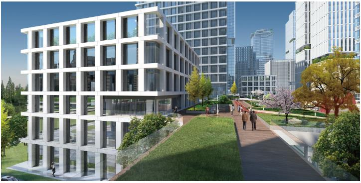 在研發(fā)辦公板塊,22棟建筑被精準劃分為三種生命體量。180米超高層A塔以首層5.5米挑高,迎接企業(yè)總部入駐;50-100米高層B塔為成長型科技企業(yè)定制4.5米層高與VIP洗手間(帶淋?。?;24米獨棟C塔一、二層預(yù)留可拆卸樓板,打通后層高可達10米,首層最大荷載可達1200-1500kg/㎡,滿足生物醫(yī)藥企業(yè)的重型設(shè)備需求。