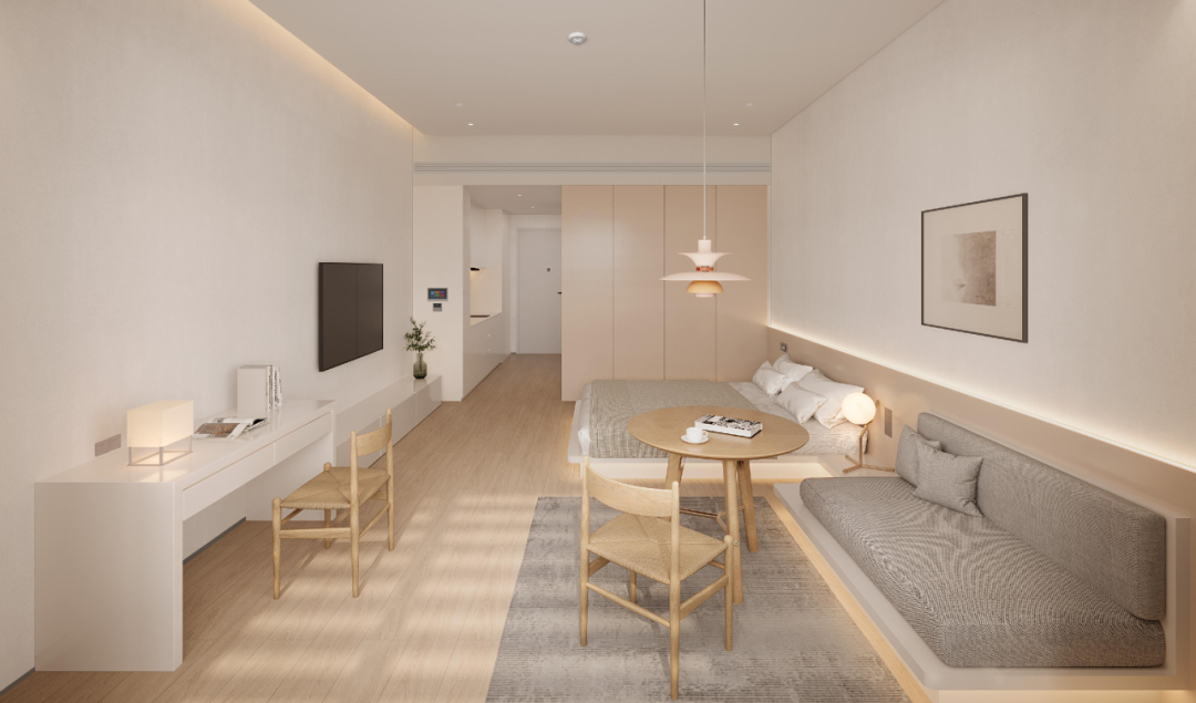 人文關(guān)懷時刻滲透生活場景。員工宿舍中,33-47平方米單間占比近90%,首層共享廚房飄散著家常煙火;專家公寓21%為一房以上戶型,引入酒店式保潔與健身服務(wù);四組分散式食堂與900平方米宴會廳通過地下廚房聯(lián)動,既能滿足日常餐飲,亦可瞬時承接千人國際會議。在這里,每一寸混凝土都承載著創(chuàng)新的重量,每一扇落地窗都映照著產(chǎn)業(yè)的未來?!@是珠光集團對創(chuàng)新生態(tài)的溫暖承諾。