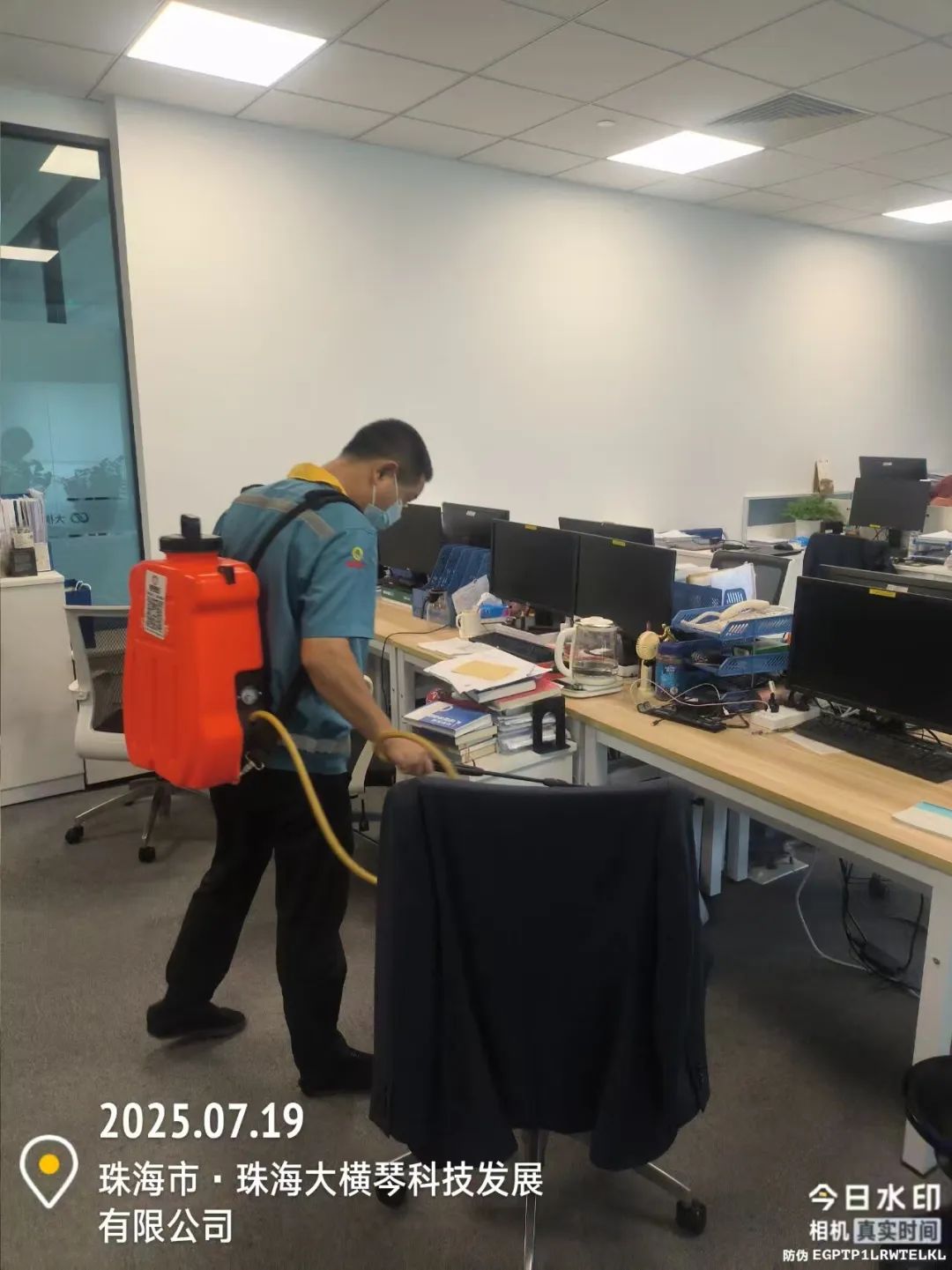 從在建項(xiàng)目工地到星樂(lè)度·露營(yíng)小鎮(zhèn),從南油大酒店的綠化帶到橫琴口岸的旅客通道,從5.0產(chǎn)業(yè)園區(qū)的生活區(qū)域到所轄物業(yè)項(xiàng)目的公共區(qū)域,都活躍著珠光人忙碌的身影,他們或在進(jìn)行全面地毯式清理消殺,或是宣貫蚊媒防控要點(diǎn),全力以赴做好基孔肯雅熱疫情防控工作。