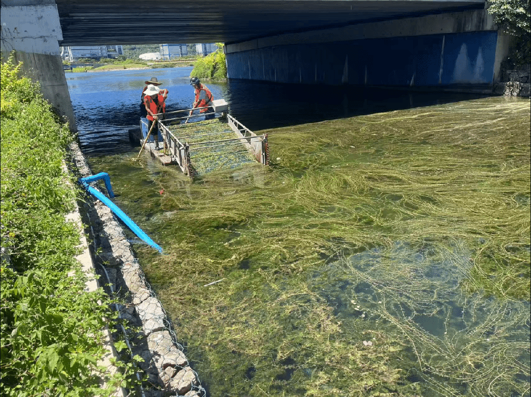 水草雖是自然之景,但過(guò)量生長(zhǎng)卻會(huì)影響河道生態(tài)與美觀。大橫琴城資在橫琴排洪渠及天沐河河道開展專項(xiàng)清理,集中打撈過(guò)量生長(zhǎng)及腐敗斷根的水草。